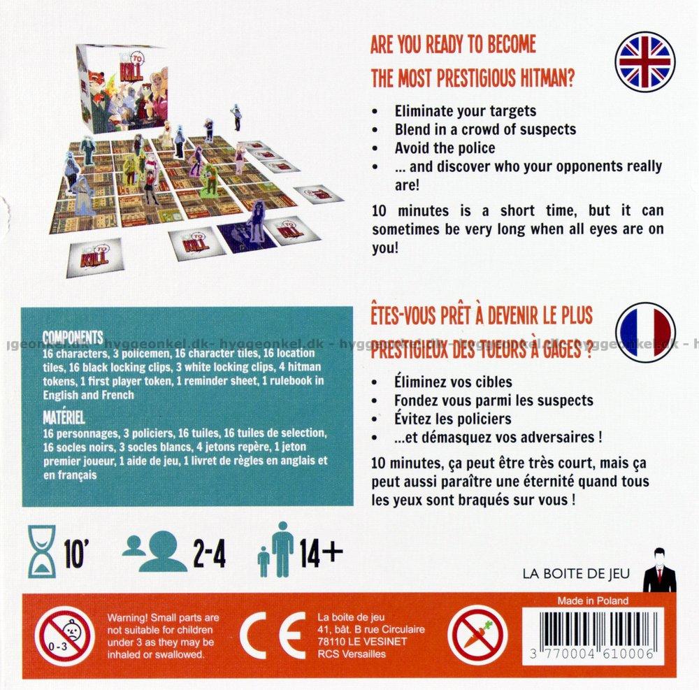 Allteftersom tiden går i 10' to Kill kommer pressen att öka och misstankarna kommer att tynga spelarnas axlar. 10 minuter är inte lång tid, men det kan kännas som evigheter när allas ögon vilar på en! Du ska bluffa och använda diskretion när du eliminerar dina mål... och motståndarnas lönnmördare!
