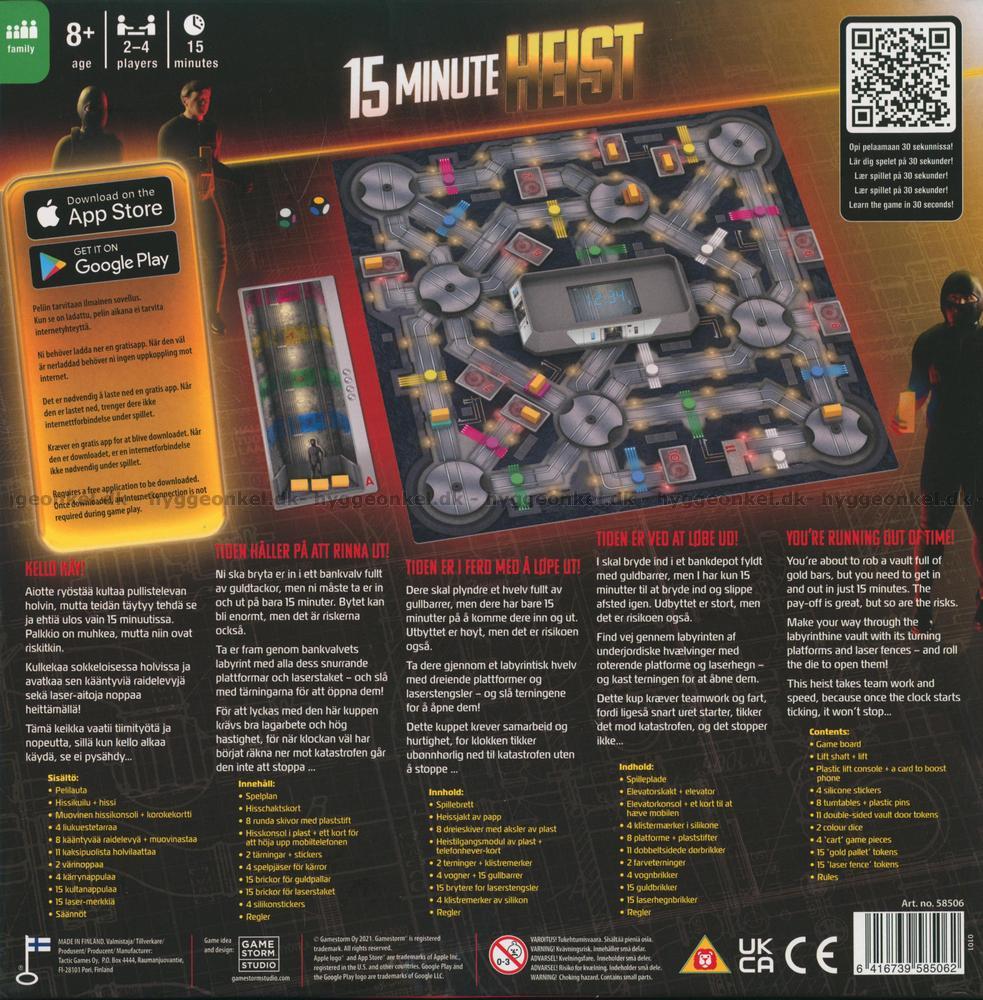 Ni har bara 15 minuter på er att både bryta er in och komma ut igen, så tiden är emot er. Det gäller att skynda på och ni måste verkligen samarbeta om kuppen ska lyckas.