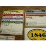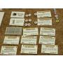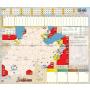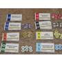 Spelbräde, kort, brickor i kartong, marker och sedlar.