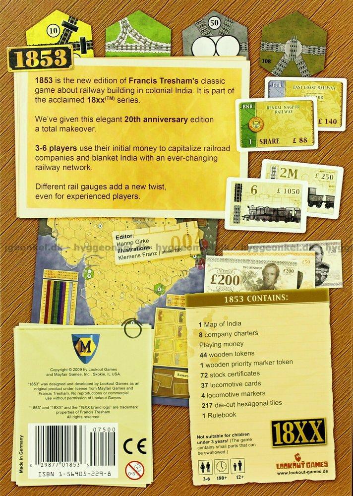 1853 är den nya utgåvan av Francis Treshams klassiska spel om järnvägsmoguler i Indien. Det är en del av den kritikerrosade 18xx-serien.
