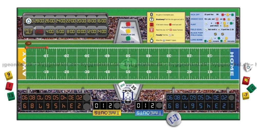 Denna utgåva av detta spel med amerikansk fotboll som tema har inga lag på brädet. Det finns heller inga kort. Allt avgörs av valet av tärningar och vad utfallet av dem blir.