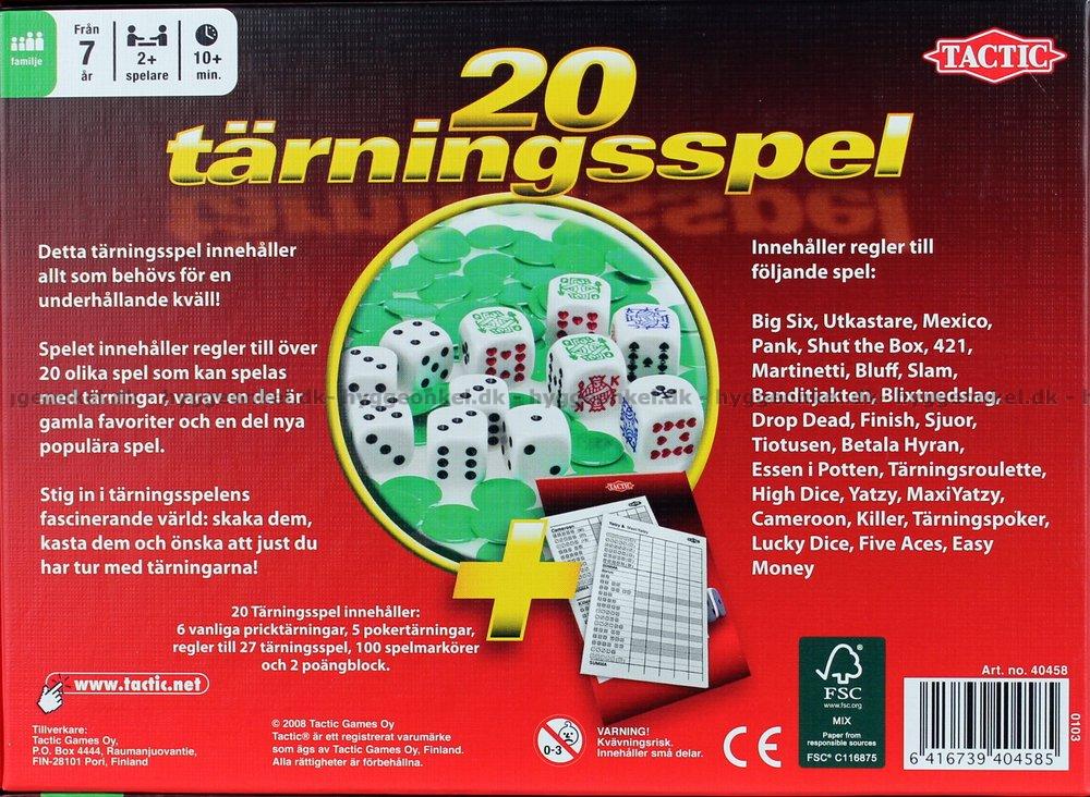 20 tärningspel innehåller allt du behöver för en helkväll tillsammans med familjen eller vännerna.