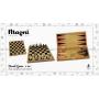 På utsidan av lådan hittar du spelbrädena för schack respektive dam. Backgammonbrädet finner du på insidan.