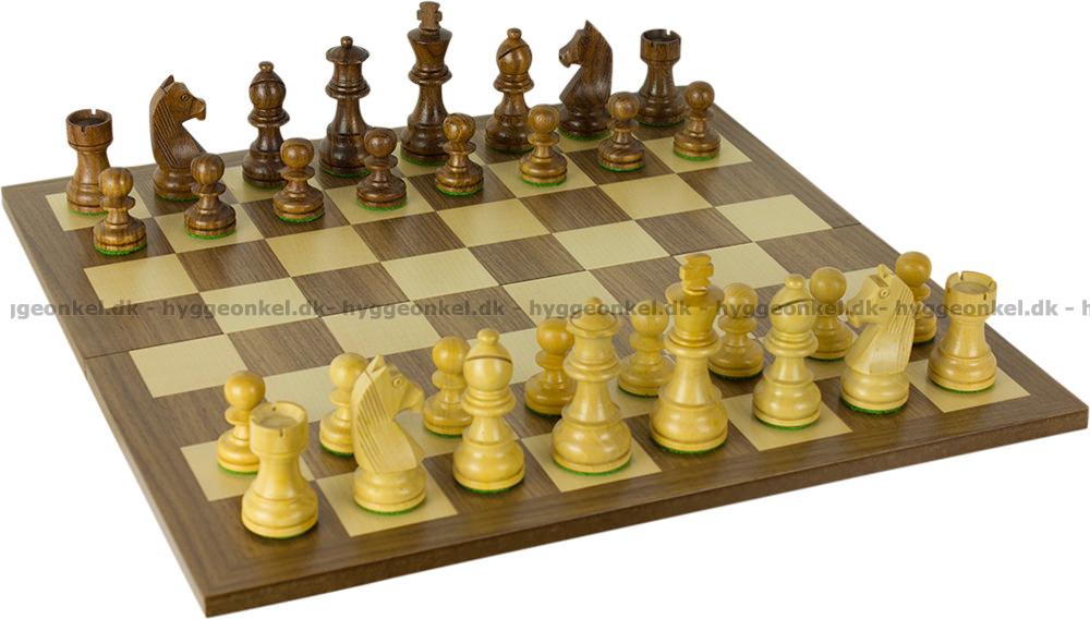 Schackbrädet har en fältstorlek på 40 x 40 mm.