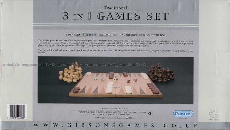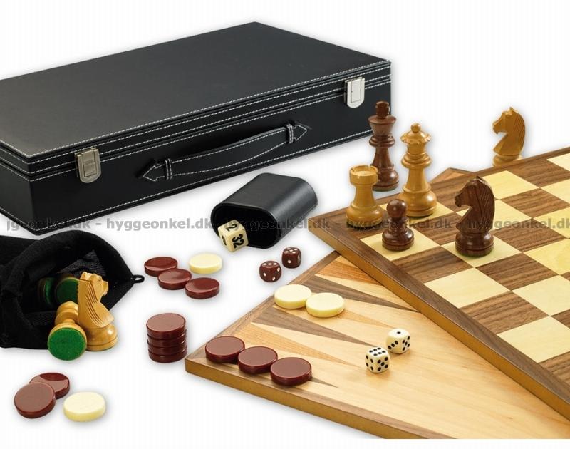 3-i-1: Schack - backgammon - dam - 34 cm - från Gibsons