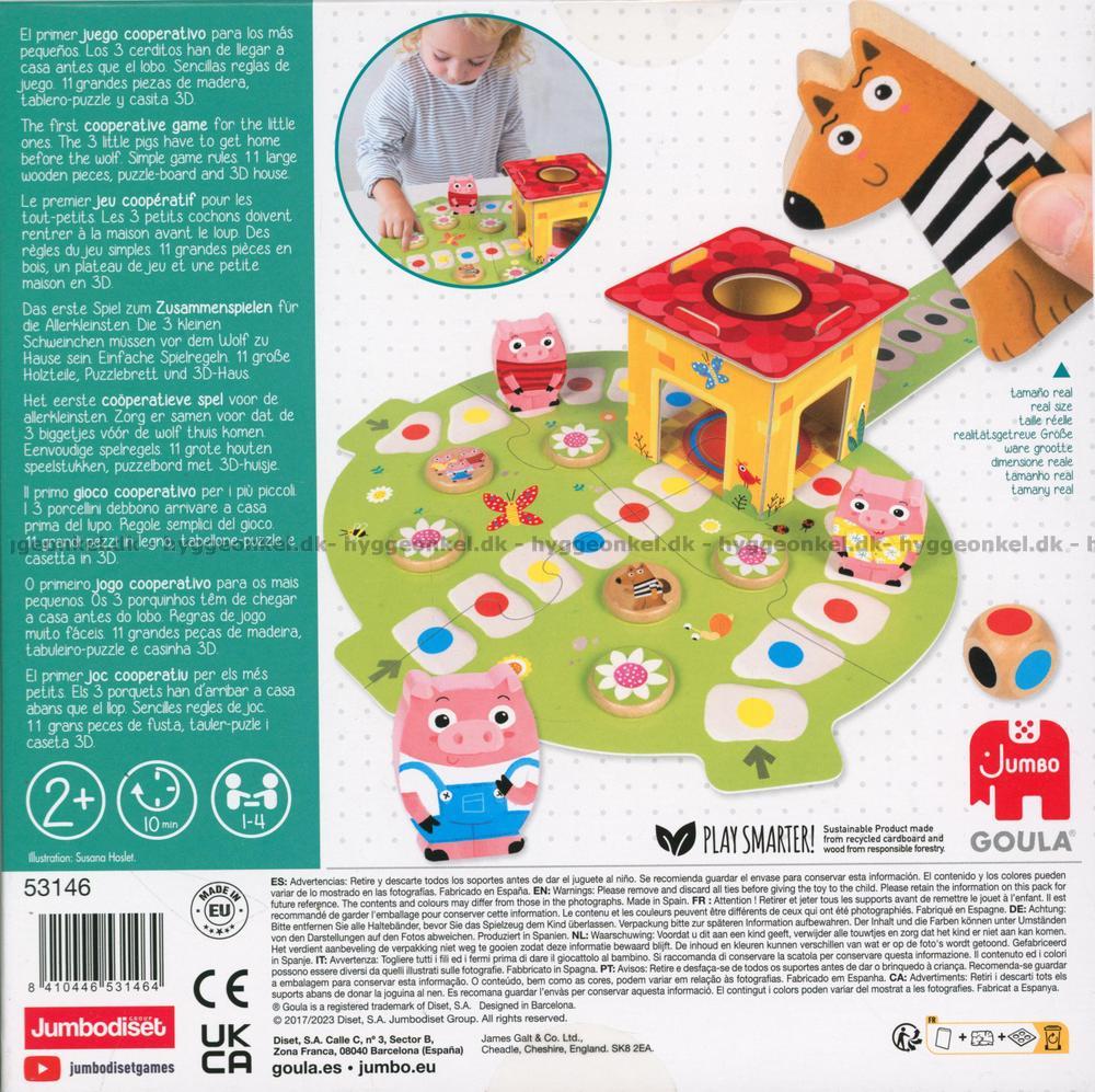 I detta spel ska alla spelarna samarbeta för att få de tre små grisarna säkert hem innan vargen kommer!