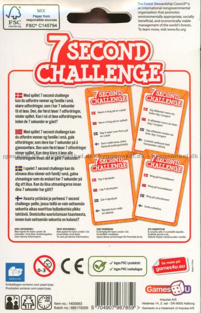 Du får 7 sekunder på dig att klara en utmaning. Det kan till exempel vara: Nämn tre djur med tassar, nämn tre ord som börjar med "n" eller att säga 4 djurläten.