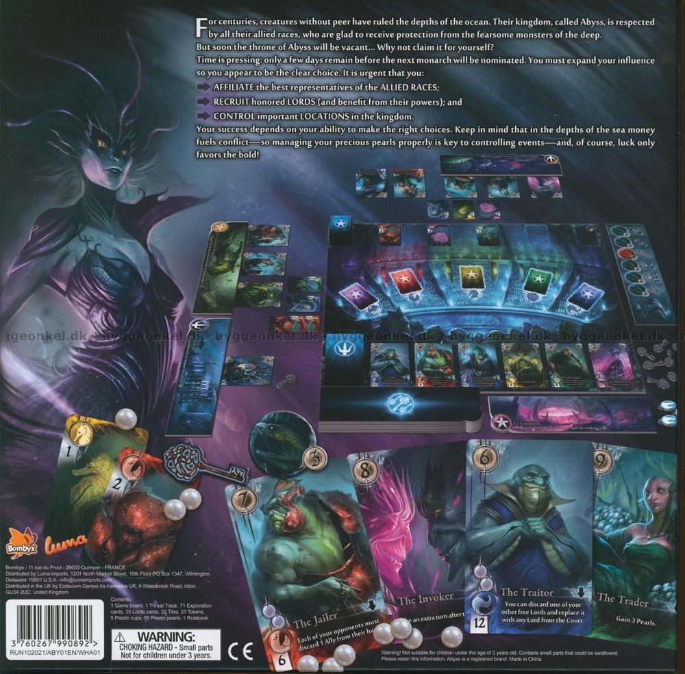 Abyss är ett spel som handlar om utveckling, kombination och resursinsamling. Spelarna ska försöka överta kontrollen över de olika platserna i undervattensstaden Abyss.
