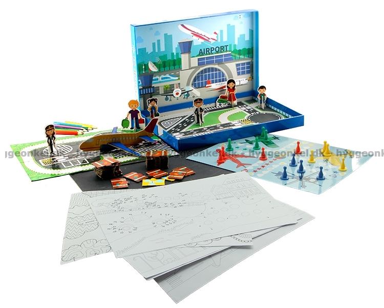 I denna box finns spel och andra aktiviteter att fördriva tiden med.