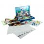 Fia med knuff, pussel, modeller att leka med, blyertspennor och en rad uppgifter att klura på.