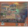Spelområden, kort, tärningar, marker i kartong och miniatyrfigurer i plast.