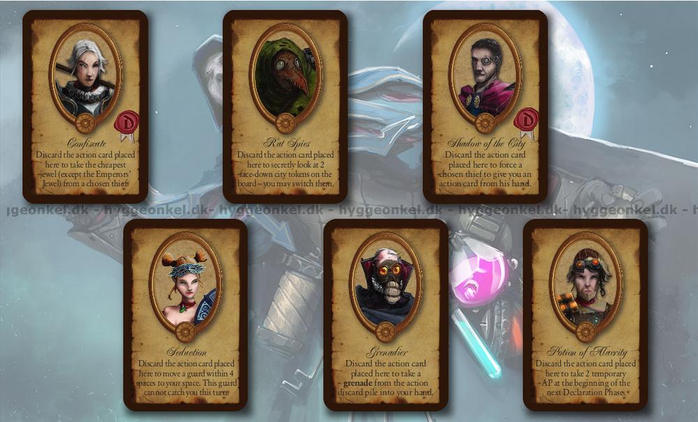 Under spelets gång använder spelarna sina många unika egenskaper och actionkort som representerar speciella trick, alkemi-drinkar och komplicerade gadgets inspirerade av stora Renässans-uppfinnares idéer.