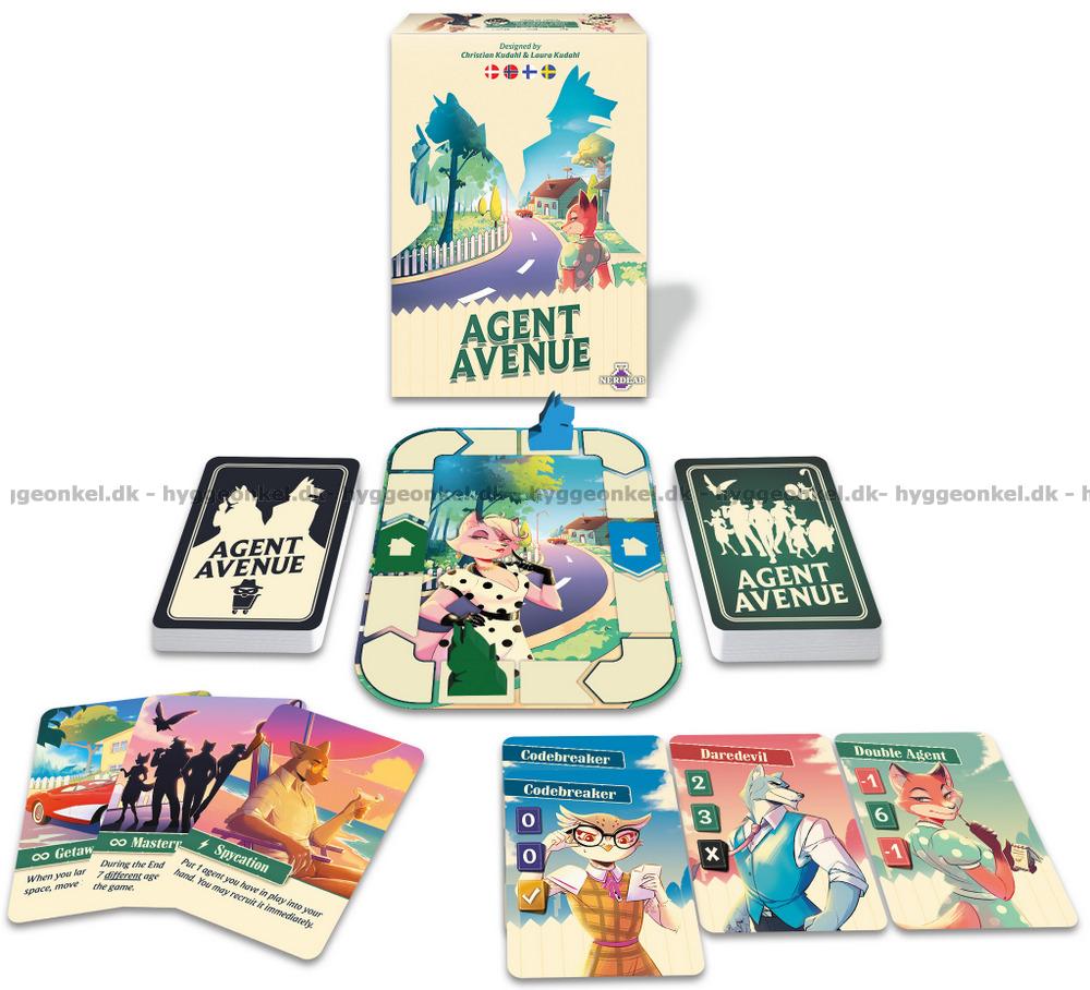 Agent Avenue är ett spännande och snabbt spel, där varje kort kan vända spelet och varje beslut är en chans att ligga steget före.