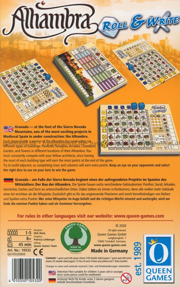 I denna version av Alhambra handlar allt om tärningar. Precis som i brädspelsversionen gäller det att bygga sin egen version av det vackra palatset Alhambra.