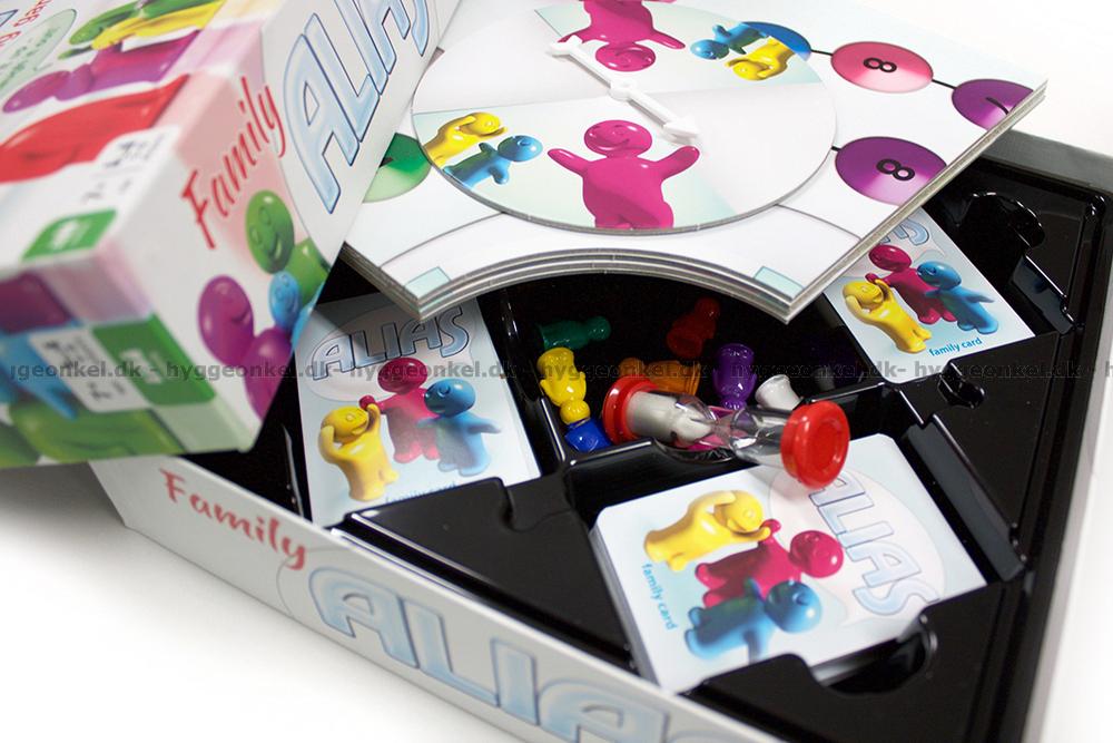 I familjeutgåvan av Alias finns "familjeord" och "vuxenord". Familjeorden används när ett barn ska förklara för en vuxen eller vice versa. Dessa ord är givetvis enklare än de vuxenord som ska användas när vuxna ska förklara för varandra.