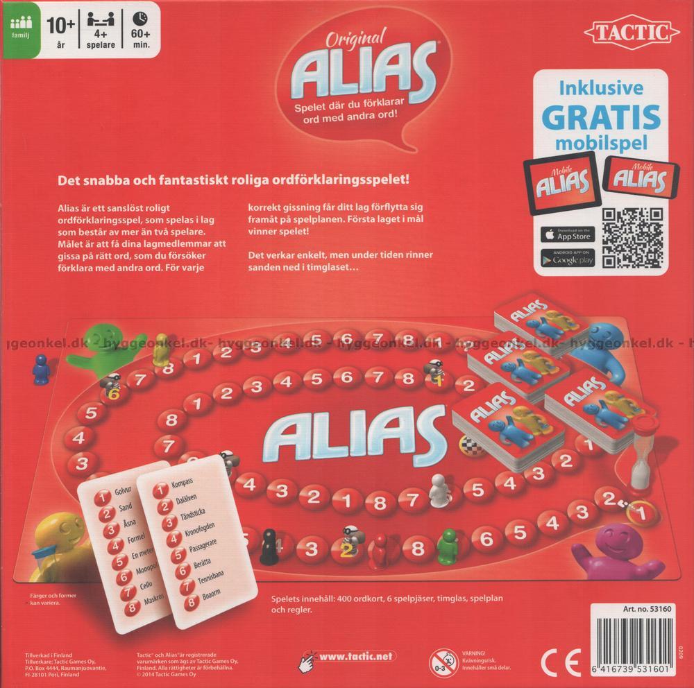 För att spela Alias krävs minst fyra spelare som delas upp i två lag. Spelidén är enkel. Man ska helt enkelt förklara ord på ett sätt som gör att lagmedlemmen/lagmedlemmarna kan gissa rätt. Samtidigt går allt på tid, så det gäller att vara kvick i tanken!