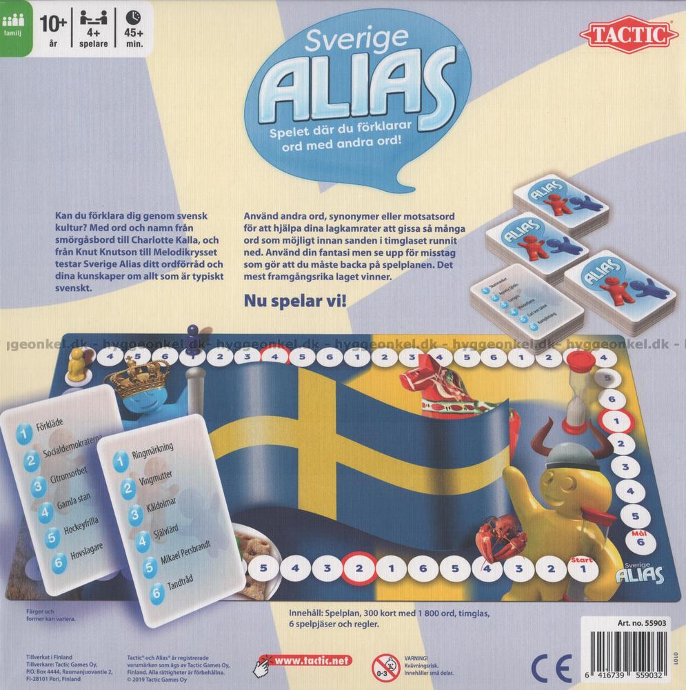 I den här versionen av Alias får du verkligen testa dina kunskaper om allt som är "typiskt" svenskt. Ju fler ord du kan få dina lagkamrater att gissa rätt, desto fler poäng får ni.