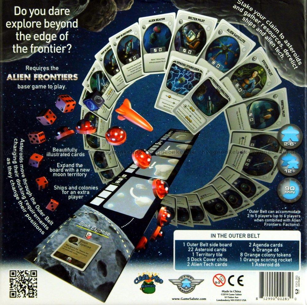 The Outer Belt-expansionen till Alien Frontiers ger dig rymdskepp och tärningar så att du kan addera en extra spelare. Det ger plats för fem spelare allt som allt, eller sex i det fall du också har Factions-expansionen.