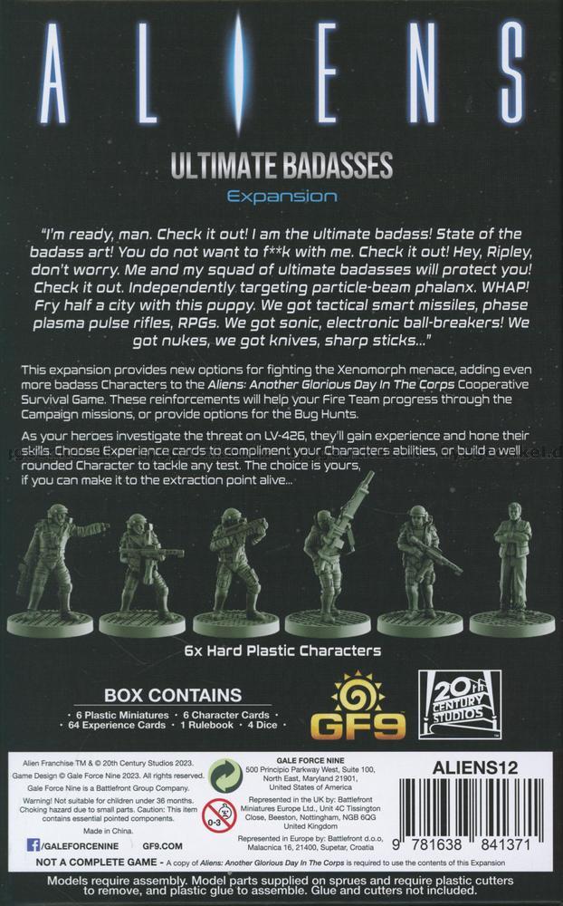 Med expansionen Ultimate Badasses får du kort och miniatyrfigurer att använda i Aliens: Another Glorious Day In The Corps.
