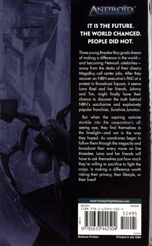 In addition to its 96 pages of fiction, the hardcover edition of Monitor comes with a sixteen-page full color insert with setting information on activism in the Android future, NBN's Global Adaptive Entertainment, MegaBuy, and the future of marketing.