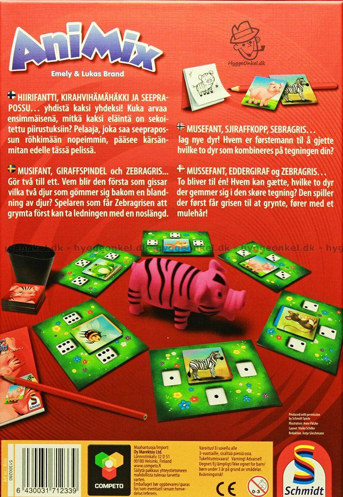 Animix handlar om att man ska rita en kombination av två djur, såsom till exempel ett bi och en guldfisk. En spelare ritar och de andra gissar (man har en gissning var). Den som är först med att trycka på grisen (den grymtar!) och gissar rätt vinner omgången.