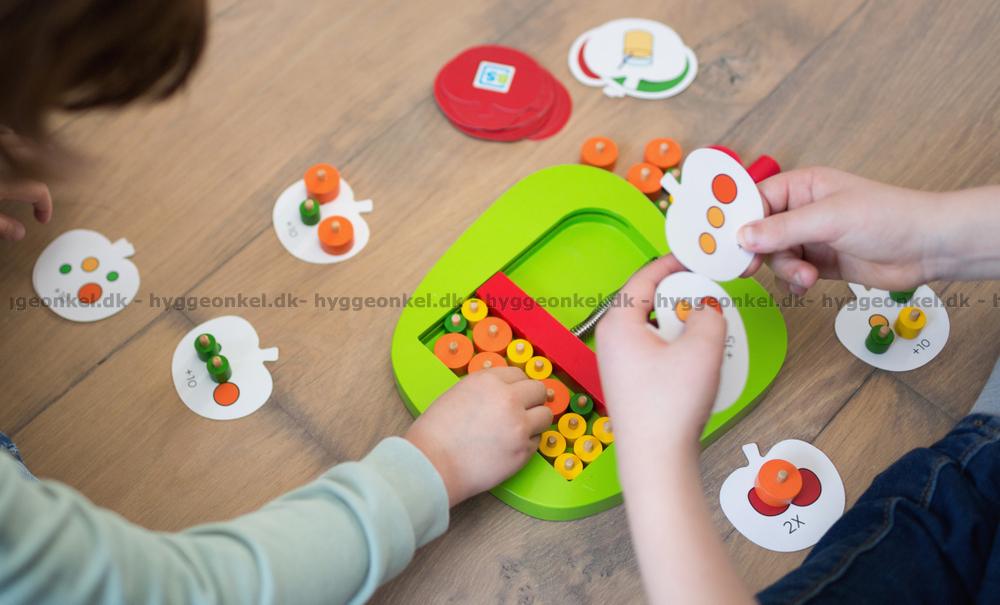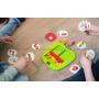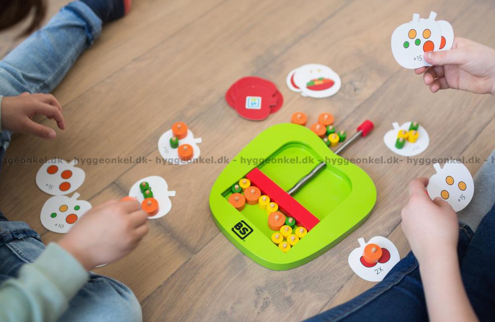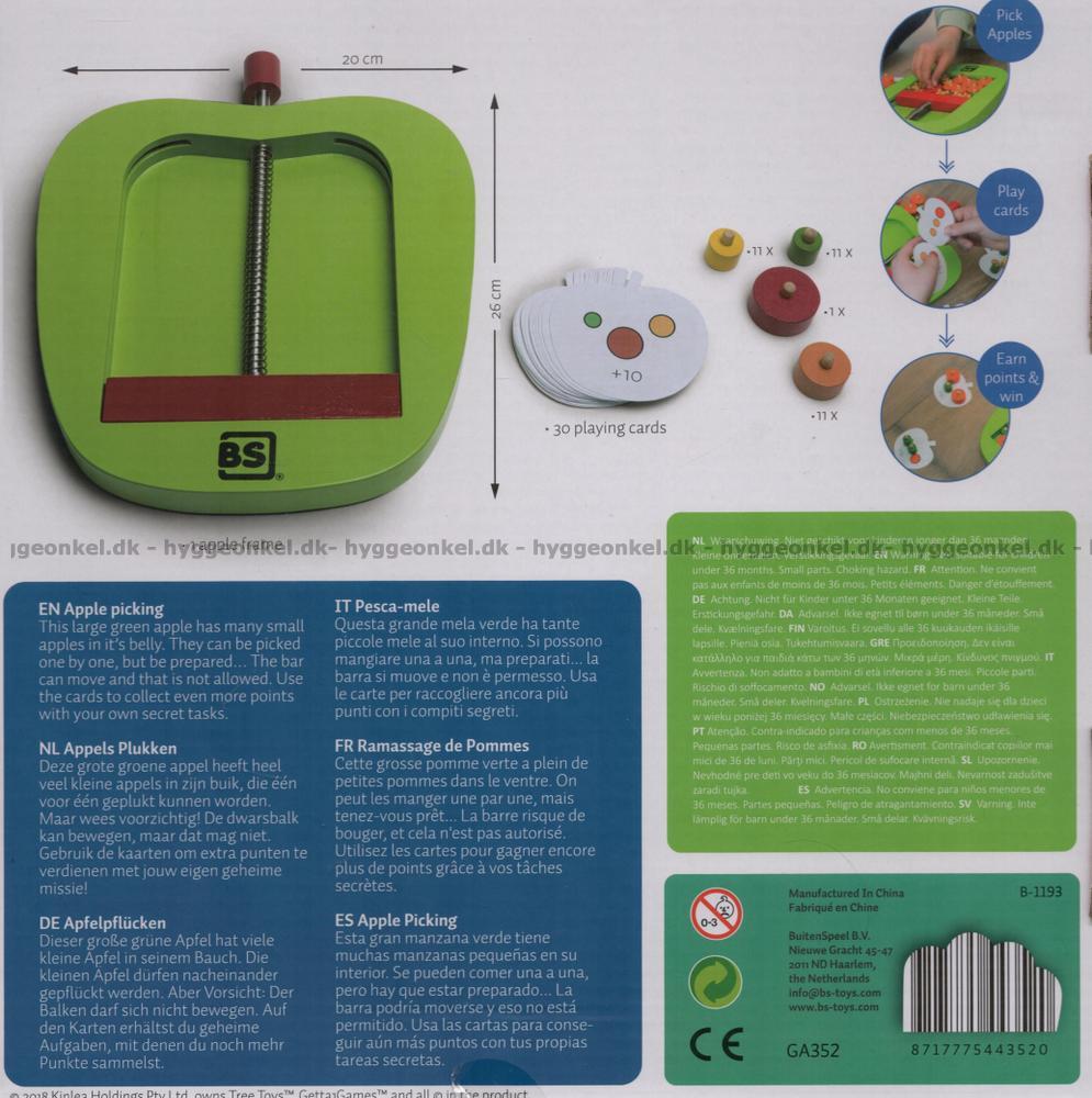 - Spelbräde (26 x 20 cm) och brickor i trä. Därutöver ingår 30 kort. Spelreglerna är på engelska (men de är mycket enkla).