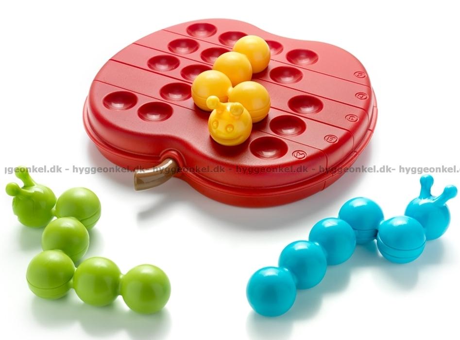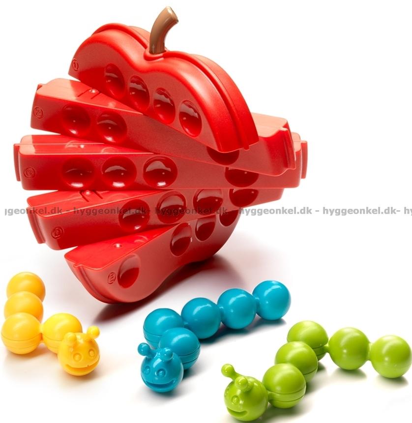 Kan du hjälpa larverna så att det finns plats för dem alla i det läckra, röda äpplet?