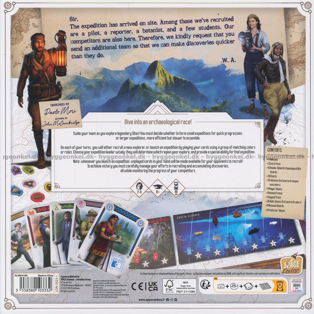 Archeos Society är ett spännande och strategiskt brädspel där spelarna tar på sig rollerna som medlemmar i ett prestigefyllt arkeologiskt sällskap. Spelet börjar med en ambitiös expedition till ett område fyllt med ovärderliga artefakter och gamla hemligheter. Spelarna måste navigera genom utmanande utgrävningsplatser och tävla mot rivaliserande lag för att upptäcka de mest betydelsefulla fynden.