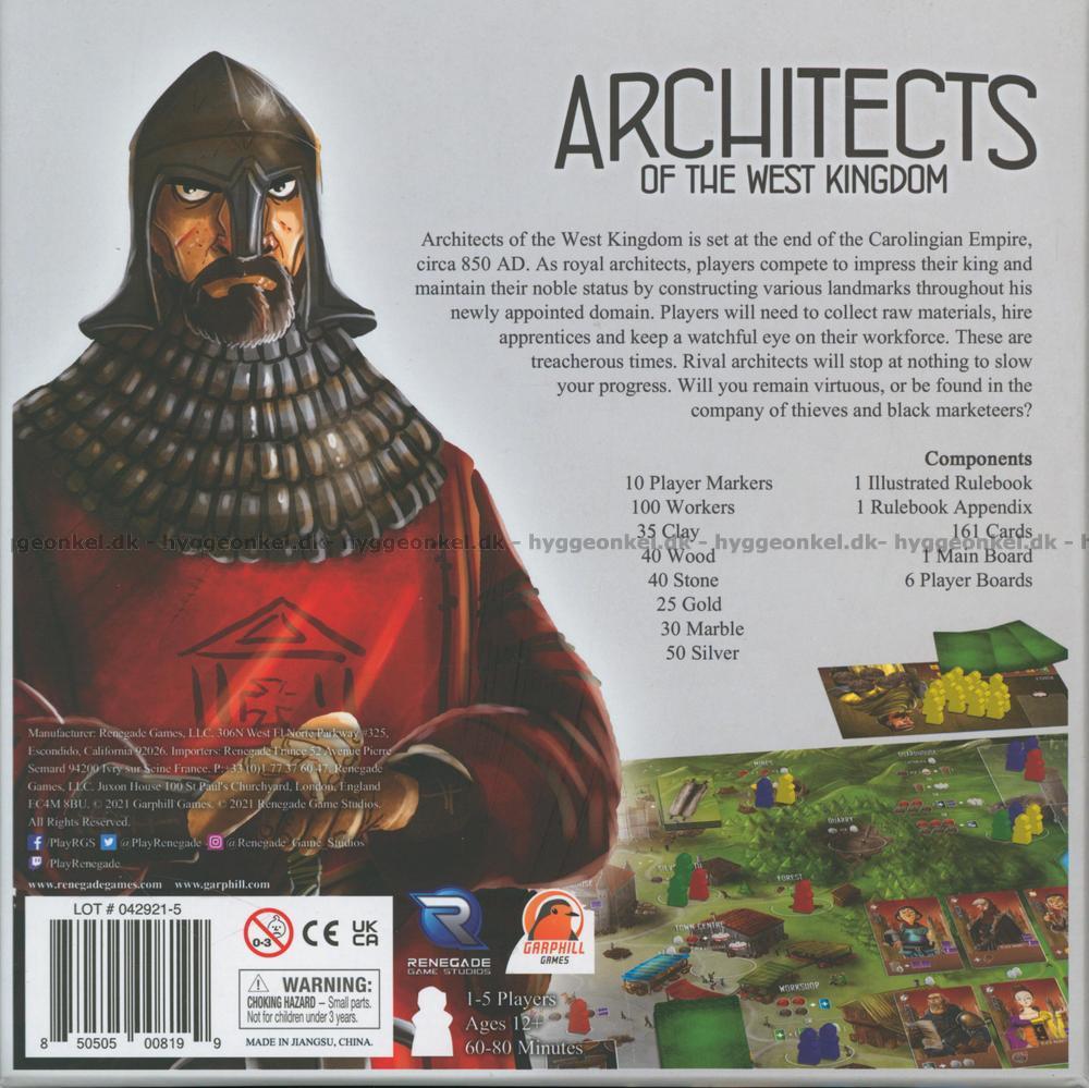Spelkartongen för Architects of the West Kingdom innehåller: