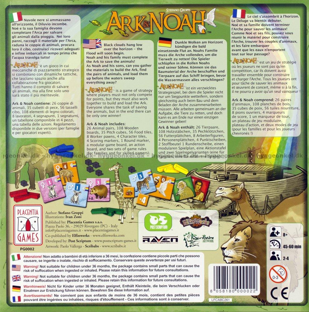 Ark & Noah är ett strategispel i vilket spelarna både ska samarbeta och försöka vinna genom att få flest poäng när det handlar om att befolka Arken.
