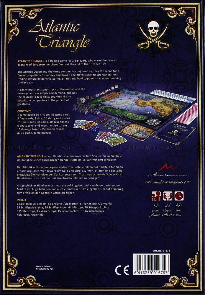 Atlantic Triangle är ett handelsspel. Spelarna färdas på haven som kaptener på europeiska handelsflottor i slutet av 1700-talet.