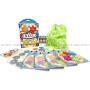 Brickor i plast (mäter cirka 2 x 1 x 0,5 cm), individuella spelplattor (mäter cirka 19 x 14,5 cm), tygpåse och cirklar i kartong.