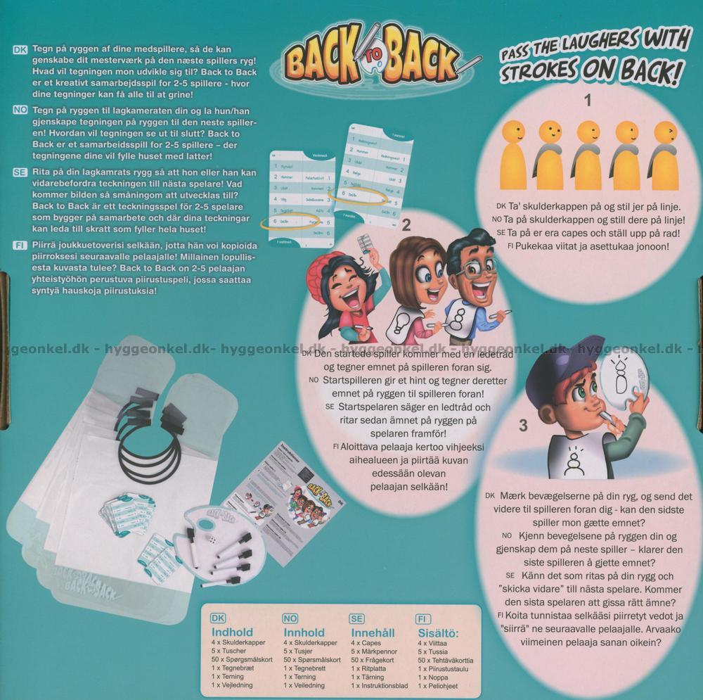 I Back to Back är det dock inte ett ord eller en mening som ska viskas vidare till nästa person tills det att meddelandet når den sista personen och man får se vad slutprodukten blev.