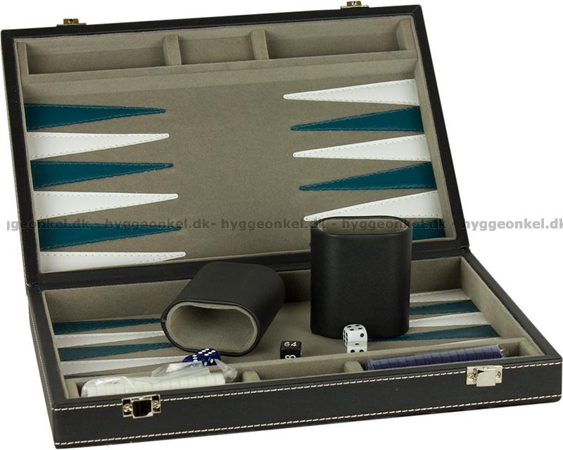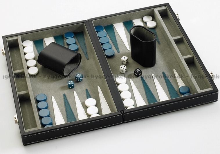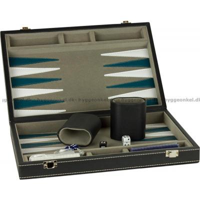 Här får du ett klassiskt backgammonspel i en fin utgåva. Spelet är konstruerat som en praktisk portfölj som är enkel att bära med sig.