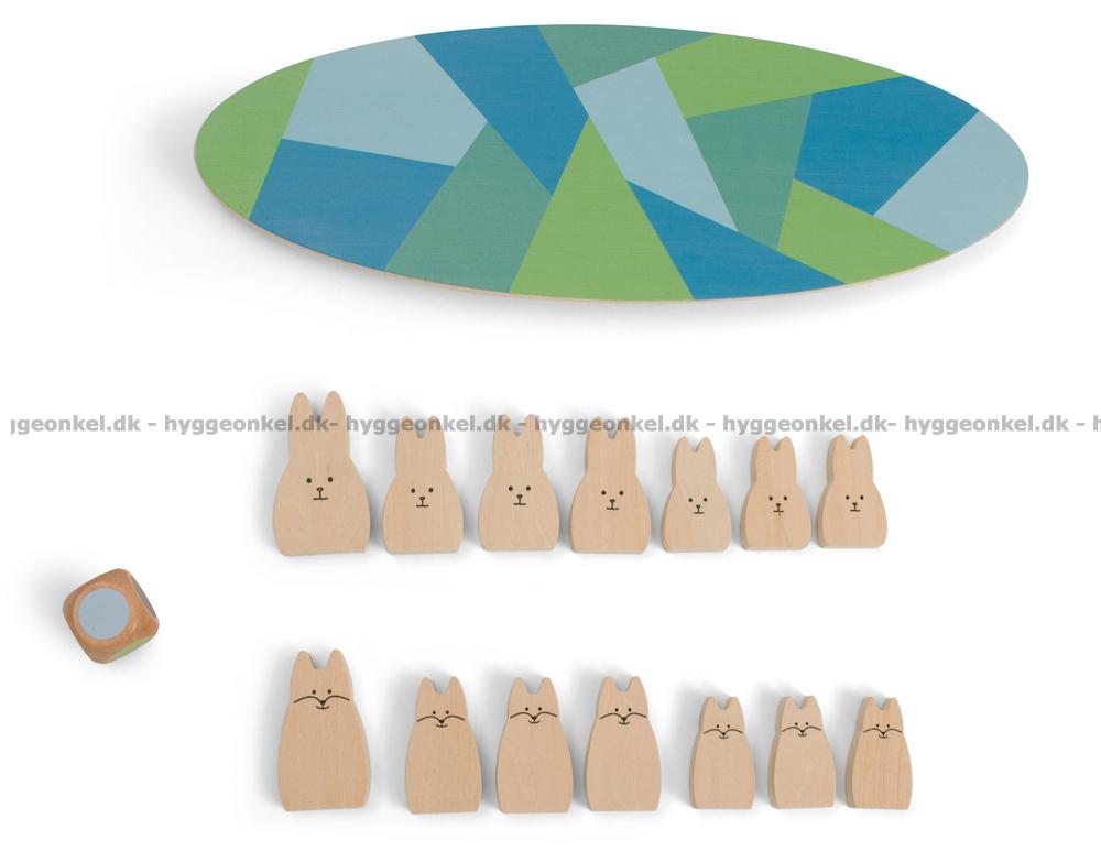 Slå med tärningen och se i vilket område du får placera ett av dina djur. Blir det rävarna eller kaninerna som kommer först upp på brickan?