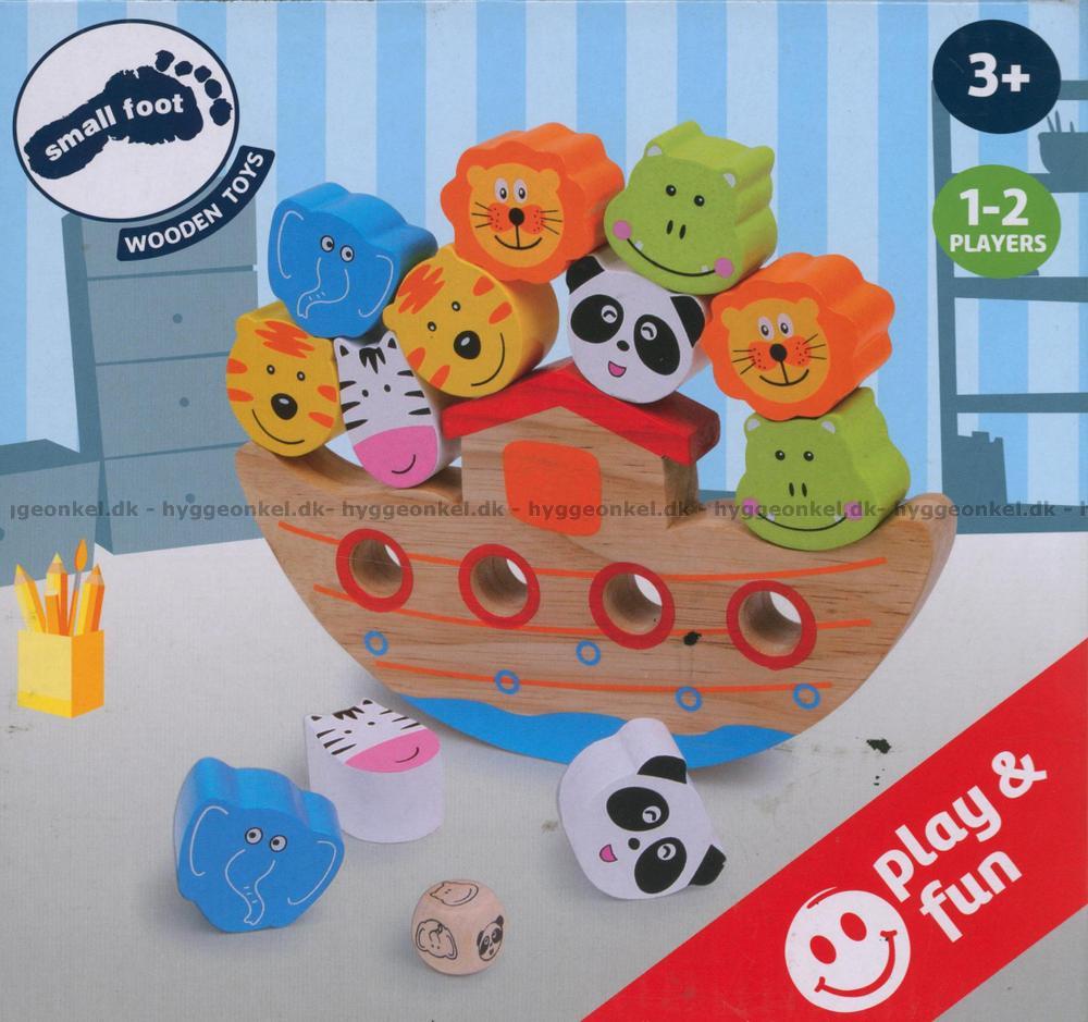 Ark, 12 bitar formade som djur och 1 tärning (allt i trä).