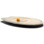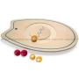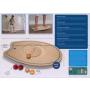 Brädet i trä mäter cirka 50 x 32 cm. Dessutom ingår 2 större bollar och 3 mindre bollar i trä. De större bollarna har en diameter på cirka 3,5 cm medan de mindre har en diameter på cirka 2 cm.