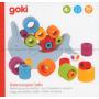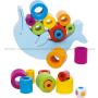I detta balansspel används runda klossar i olika storlekar. Dessa ska placeras på delfinens mage.