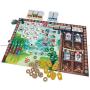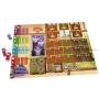 Spelområden, brickor i kartong samt komponenter i trä.