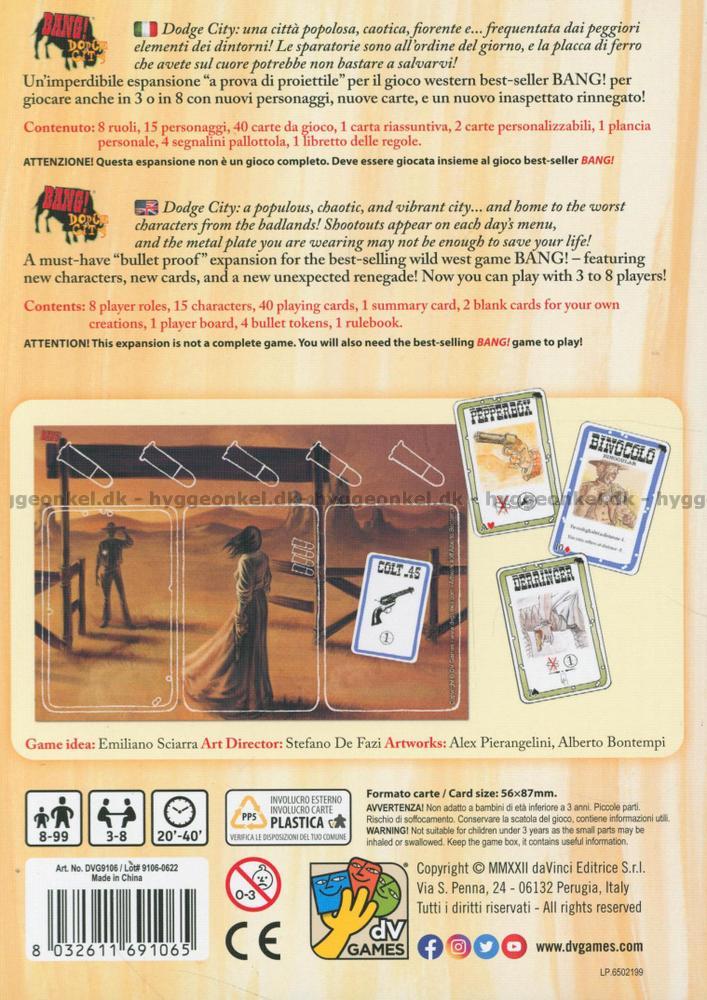 Här får du nya karaktärer, nya kort, nya roller och en helt ny renegade. Med den här expansionen kan Bang! spelas av allt mellan 3-8 spelare.