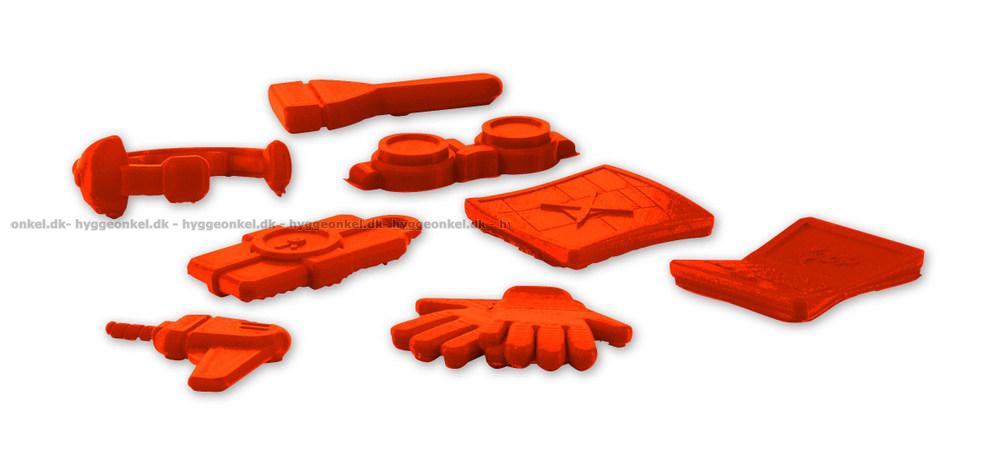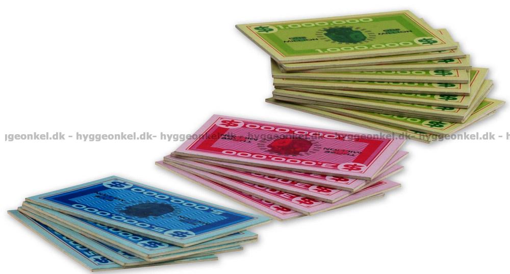 1 elektroniskt kassaskåp (kräver 3 AA-batterier som INTE medföljer), verktyg i plast, guldtackor i plast och sedlar.