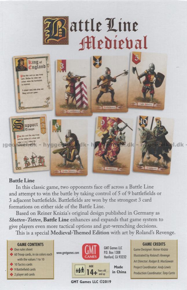 Denna nya version av det strategiska kortspelet Battle Line har fått ett nytt tema som kretsar kring krig under medeltiden.