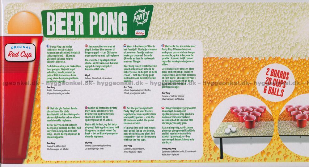 2 uppfällbara bord, 20 röda muggar och 6 bollar.