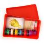 Spelet ligger i en praktisk resebox som inte tar stor plats i väskan eller på spelhyllan. Boxen mäter 16 x 9 x 6 cm.