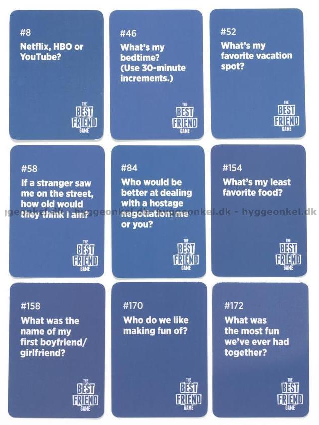 Eller, om en främling såg din vän på gatan - vilken ålder skulle din vän bedömas vara? Spelet innehåller totalt 250 frågor.