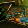 Spelområden, miniatyrfigurer, kort och marker.