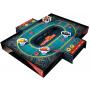 Spelplan (en del av själva kartongen), pjäser, tärning och marker.