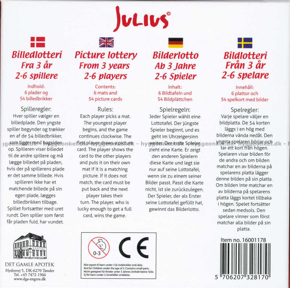 Spelet innehåller 6 brickor som var och en har 9 figurer. Brickorna mäter 13 x 13 cm. Därtill inkluderas 54 små bilder som passar på brickorna.