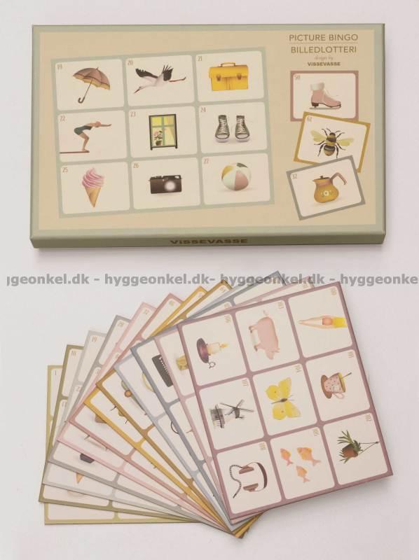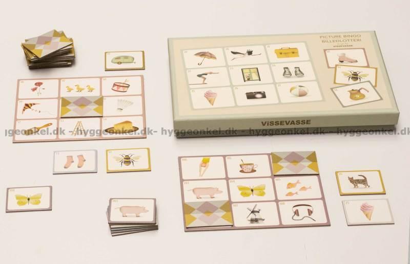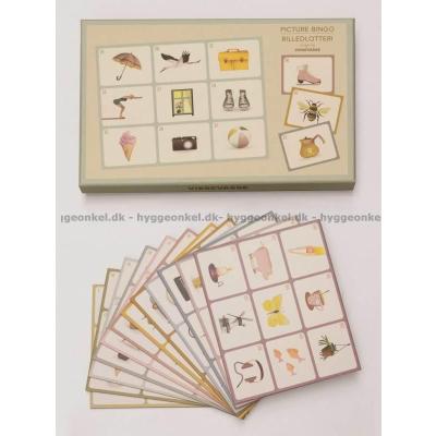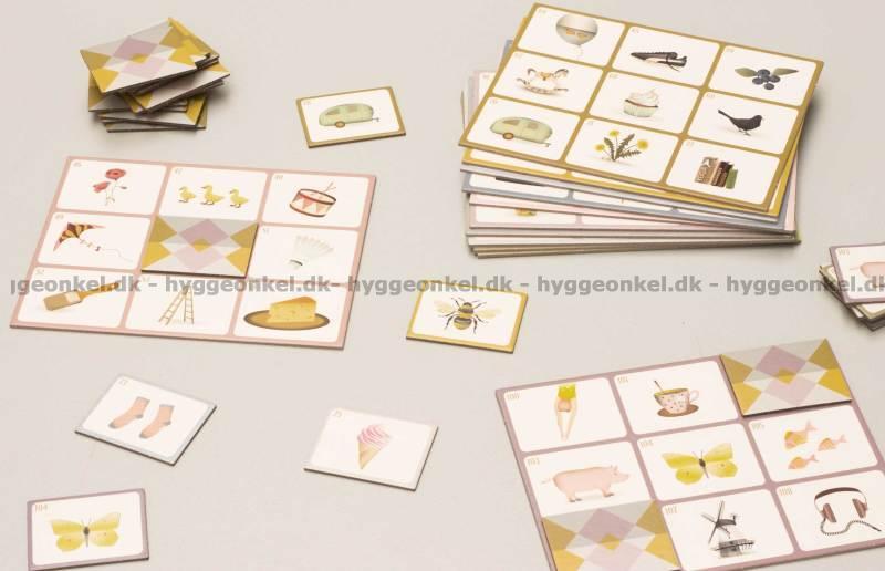 12 bingobrickor med 9 motiv på varje och 108 kort med bilder.