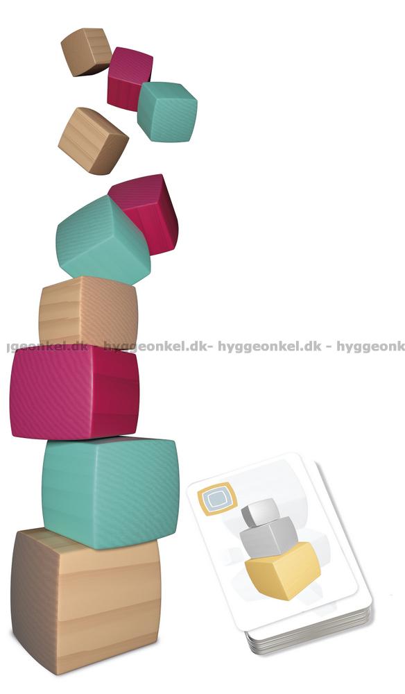 Det är dock inte så "lätt" som det låter. Varje spelare har en rad kort på hand och korten avgör vilken kloss som ska placeras. Samtidigt får tornet av klossar givetvis inte välta.